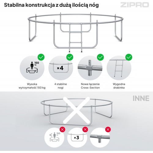 Батут Zipro Jump Pro Premium 10FT створений для активного сімейного відпочинку та інтенсивних щоденних стрибків. Продумана конструкція, сертифікована безпека та інноваційна система з’єднань роблять його одним із найнадійніших рішень у своєму класі.