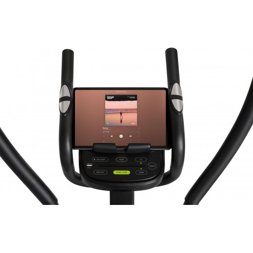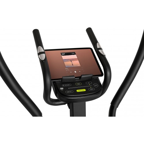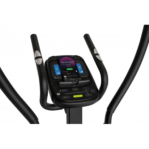 Еліптичний крос-тренажер має передню раму, посилені підшипники та верхню систему керування. Широкі ніжки та міцні ручки надають впевненості у тренінгах.