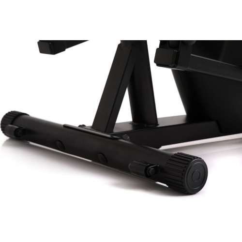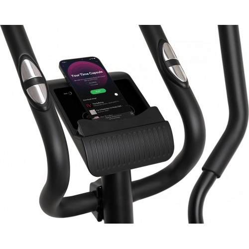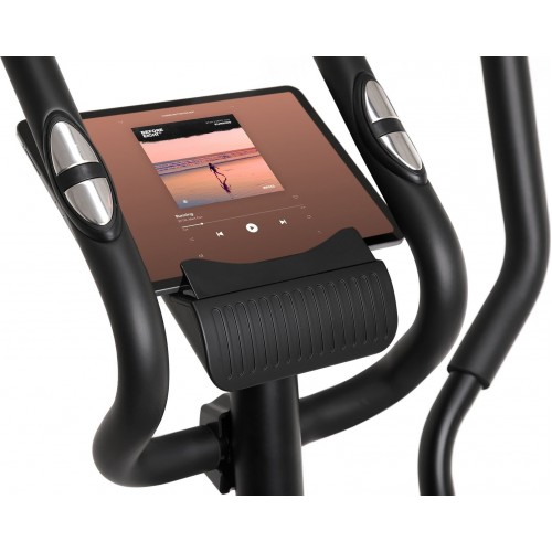 Хороший для транспортних друзів крос-тренажер легко можна переміщати під час тренування. Ніжки на підставах допускають точне вирівнювання.
