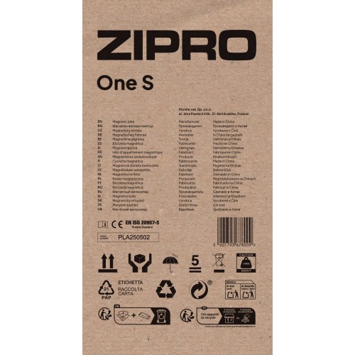 Велосипед Zipro One S , незважаючи на новий комп'ютер, має водонепроникну конструкцію та проблеми з конструкцією, конструкція стала міцнішою – максимальна вага 110 кг . Стабілізатори забезпечують стійкість, а самі вони вкриті пластиковим покриттям, щоб зробити їх міцнішими. Ергономічний дизайн для ідеальної посадки на невеликих сумішах.