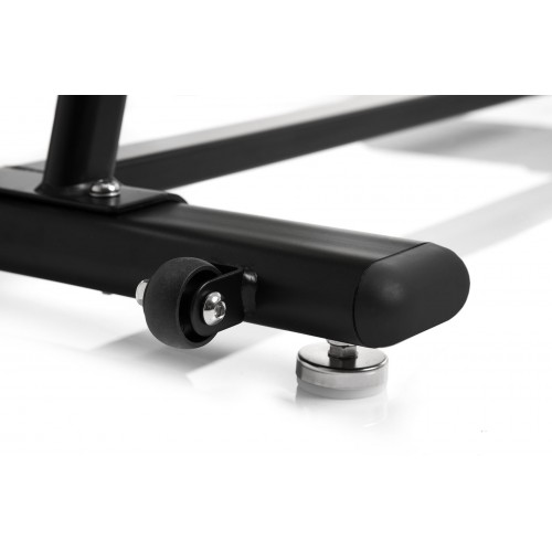 Транспортні колеса можуть змінюватися. легко переміщати місце після кімнати. Передні та задні ніжки дозволяють точно вирівняти велосипед на нервову силу.