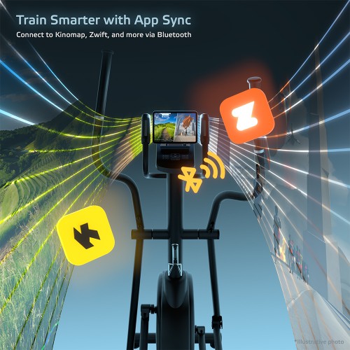 Підключіть тренажер до ваших улюблених фітнес-додатків та відкрийте для себе абсолютно новий рівень задоволення. Zwift перенесе вас у віртуальний світ, повний перегонів, Kinomap дозволить вам досліджувати реальні маршрути з усього світу, а FitShow пропонує широкий вибір планів тренувань . Жодного складного налаштування – все працює безперебійно на вашому телефоні чи планшеті.