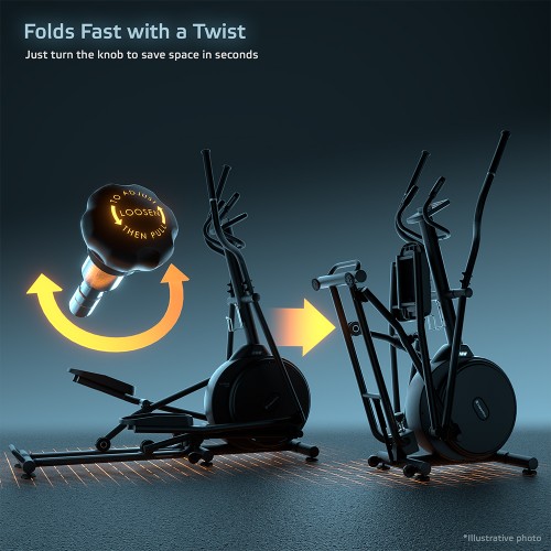 • Елегантний еліптичний тренажер із компактним складним дизайном