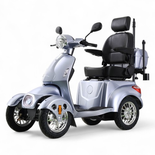 Оскільки це електричний самокат , він тихий і тому екологічно чистий. І на додачу до всього, ви можете керувати ним без водійських прав ! Сидіння зручне, а завдяки складним підлокітникам ви можете легко сісти, навіть якщо у вас є фізичні обмеження. У задній частині є два відділення для зберігання речей , в які можна покласти сумки з покупками або невеликий багаж.