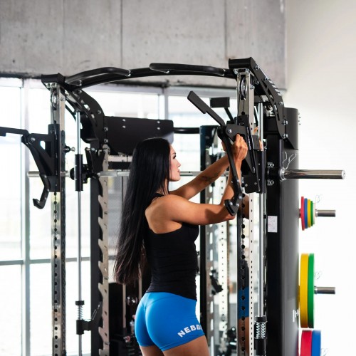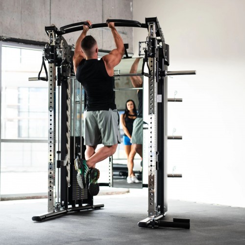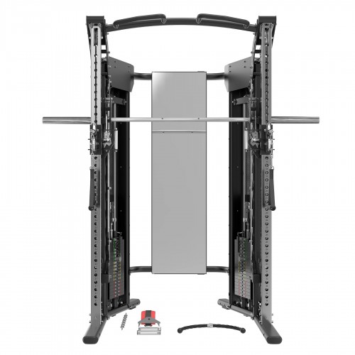 Cyklop 10 – це вдосконалений мультитренажерний зал – повноцінна станція 3-в-1, що поєднує в собі тренажер Сміта, силову раму та систему блоків. Завдяки двом точним стекам по 90 кг та розумному механізму з’єднання грифа Сміта зі стеком, ви можете тренуватися з вільними вагами, стеком або… обома одночасно. Це один тренажер, який може замінити половину вашого спортзалу.