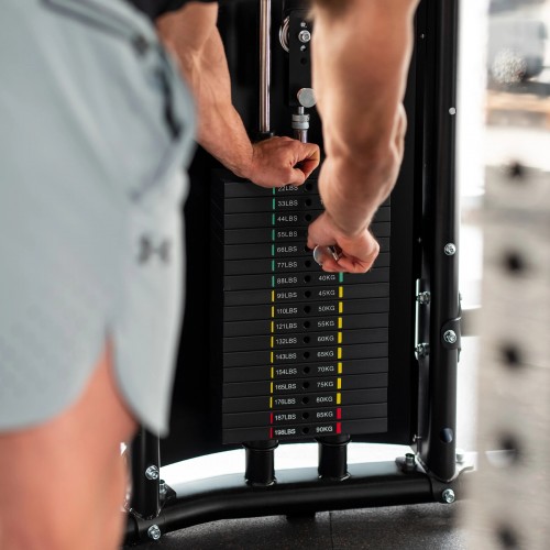 Два незалежні стеки по 2 х 90 кг працюють на алюмінієвих роликах, встановлених на підшипниках . Шарнірні хрестоподібні шківи дозволяють повністю регулювати напрямок тяги, а точна шкала отворів дозволяє точно налаштувати ручки та аксесуари відповідно до вашої статури.
