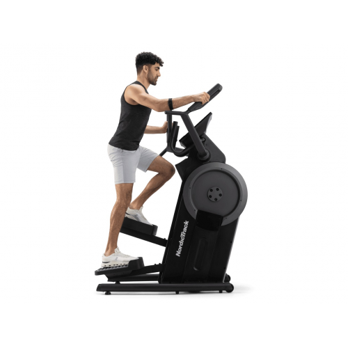 Степпер NordicTrack Step Climber XL працює за принципом підйому по сходах, що дозволяє тренувати сідничні м'язи та квадріцепси без навантаження на коліна чи щиколотки. Крок короткий та природний, з вертикальним підйомом, який допомагає підтримувати активність ніг протягом всього діапазону рухів. Це ідеальний тренажер для розвитку сили, витривалості або підтримки кардіо, особливо якщо вам потрібно рухатися, що дбайливо впливає на суглоби.