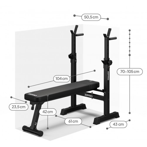 Оберіть просту лаву для тренувань ZIPRO Core, оснащену регульованими стійками для штанги