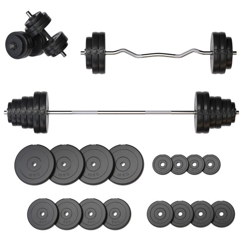Fit-On 91 кг — універсальний набір для силових тренувань вдома або у невеликому спортзалі. Завдяки широкому вибору дисків і різним типам грифів, ви зможете якісно опрацьовувати всі основні групи м’язів: руки, груди, спину, прес і ноги.
