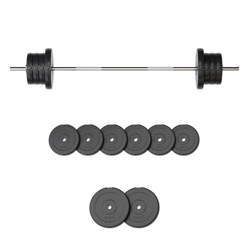 Диски з міцним ABS-покриттям надійно захищають підлогу від подряпин і зменшують шум під час тренувань. Хромовані сталеві грифи з рифленими ручками забезпечують впевнений хват і комфорт навіть під час інтенсивних занять.