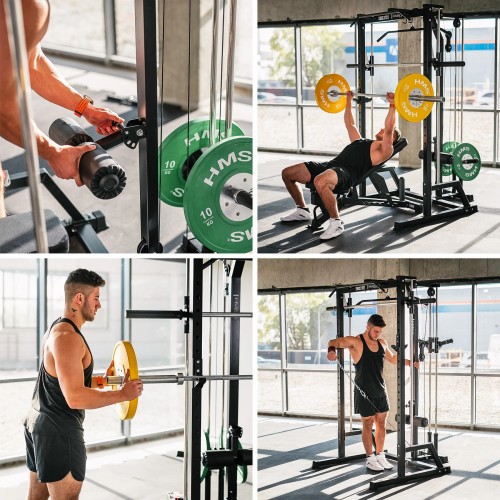Поєднуючи в собі тренажер Сміта, тренувальну стійку та блоки 1:1, SWC3101 від HMS Fitness забезпечує повноцінну платформу для силових та функціональних тренувань. Це інвестиція в довговічність, безпеку та максимальну універсальність.