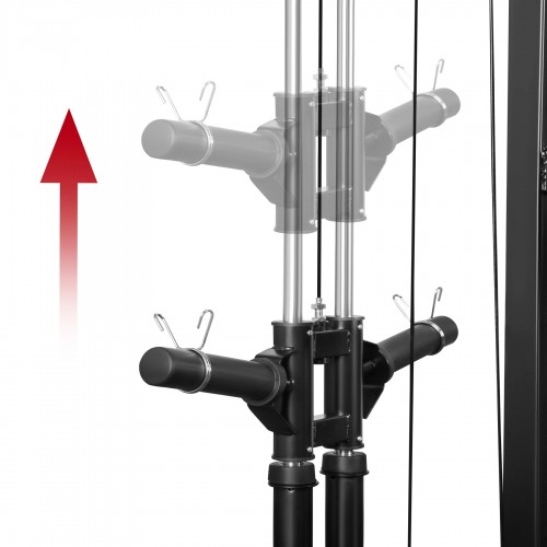 Направляючі виготовлені з нержавіючої сталі, що забезпечує високу жорсткість та ідеально плавний рух штанги. Система фіксації на основі сталевих гачків дозволяє швидко та безпечно розміщувати штангу на будь-якій висоті.