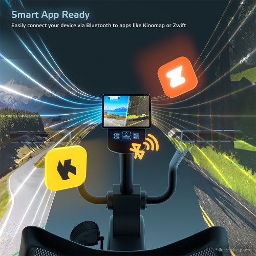 inSPORTline ZenSeat 100 — це не просто звичайний велотренажер — завдяки Bluetooth-з’єднанню ви можете легко підключити його до популярних додатків, таких як Kinomap, Zwift або FitShow . Ці додатки дозволяють тренуватися віртуально, їздити реальними маршрутами, відстежувати свій прогрес або змагатися з іншими користувачами. А якщо ви хочете зробити тренування приємнішим, просто помістіть планшет у вбудований тримач і дивіться улюблений фільм або слухайте музику.