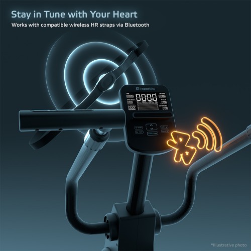 Великий, легкочитаний дисплей відображає всі необхідні дані — час, відстань, швидкість, калорії та частоту серцевих скорочень . Ви можете вимірювати частоту серцевих скорочень за допомогою вбудованих датчиків або нагрудного ременя Bluetooth (не входить до комплекту). Велосипед також пропонує програми вимірювання ЧСС та ВАТ , тест на фізичну підготовку та функцію вимірювання вмісту жиру в організмі .
