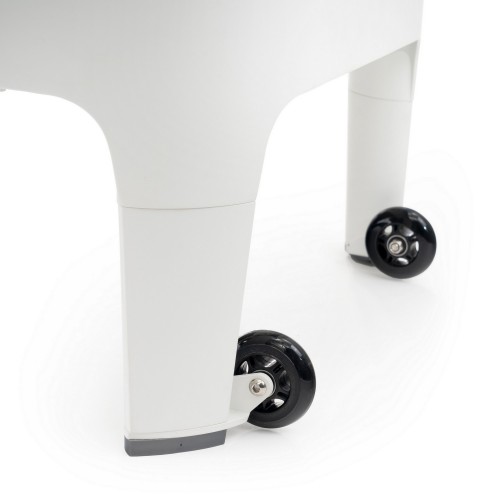 Завдяки вбудованим транспортним колесам реформер легко переміщується у студії, а можливість вертикального зберігання робить його зручним навіть для обмежених просторів.