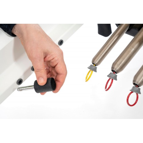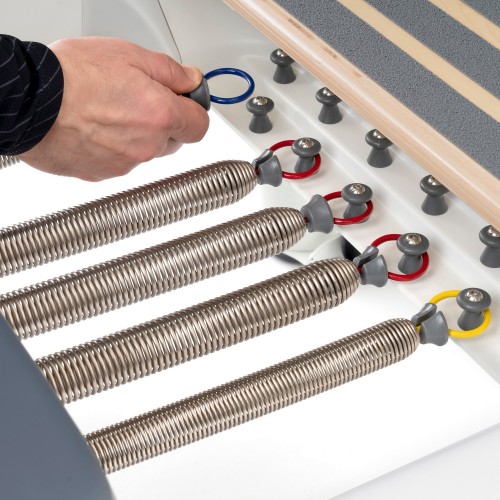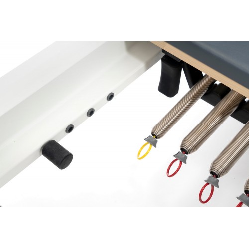Реформер оснащений повним комплектом професійних пружин різної жорсткості, що дозволяє точно дозувати навантаження залежно від мети тренування.