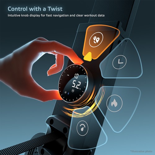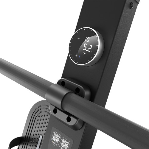 Обертова ручка керування з дисплеєм чітко відображає всі ключові показники тренування – частоту гребків, опір, кількість гребків, швидкість, час, дистанцію, спалені калорії та час на 500 м. Тренажер підтримує Bluetooth та аналогове підключення нагрудного ременя, що дозволяє тренуватися на основі частоти серцевих скорочень та відстежувати продуктивність у режимі реального часу. Завдяки тримачу для планшета ви можете насолоджуватися улюбленим фільмом або додатком під час тренування.