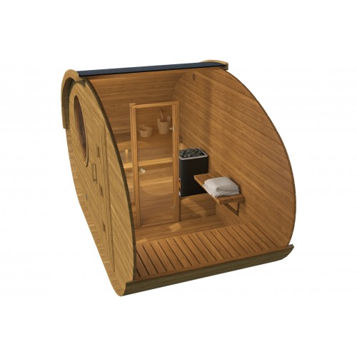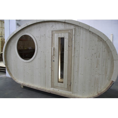 Фінська сауна Hobbit Mini на відкритому повітрі являє собою конструкцію овальної форми, що складається з двох кімнат – сауни та тамбура. Перехресно-ламінована деревина, з якої виготовлена сауна, має два зовнішні шари ялини, яка характеризується низьким вмістом смоли та високою стійкістю до високих температур. Завдяки використанню перехресно-клеєної деревини, сауна є доступною за ціною та зберігає всі переваги сауни з ялини. Унікальний дизайн сауни зробить ваш сад винятковим, а регулярне використання сауни позитивно вплине на ваше фізичне та психічне здоров'я.