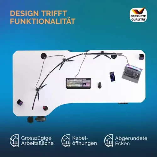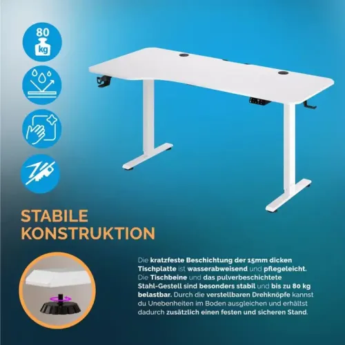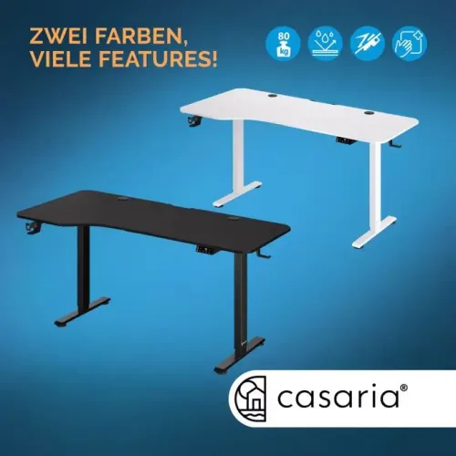 Стіл з регулюванням висоти електричний Casaria 160x75, білий, Casaria, Геймерські крісла, Ігрові столи, DB-109363