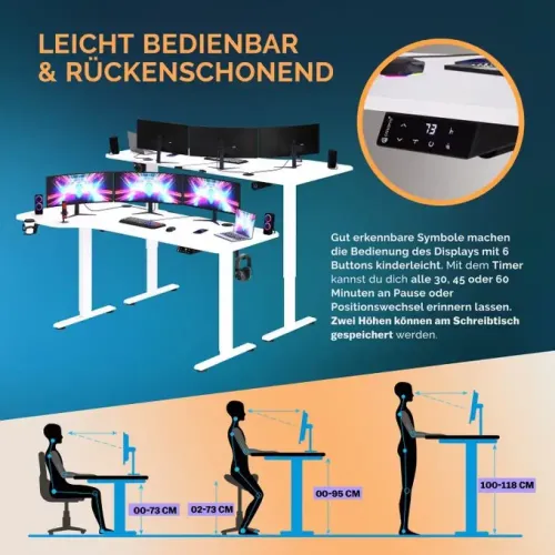 Стіл із встановленим рідкокристалічним дисплеєм можна піднімати зі швидкістю 2,25 см/с, двигун працює плавно та тихо (при 50 дБ). Контроллер столу також має функцію пам'яті та нагадування.