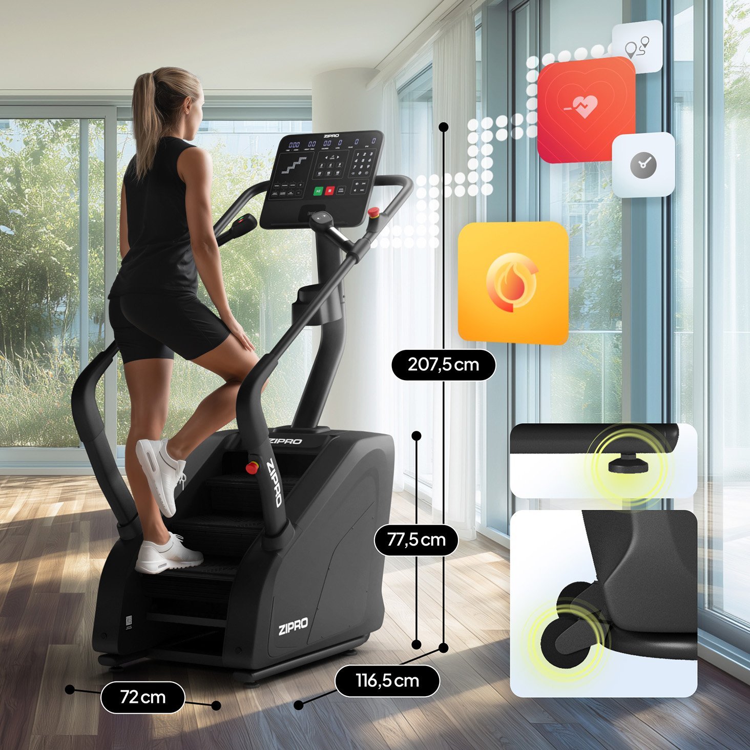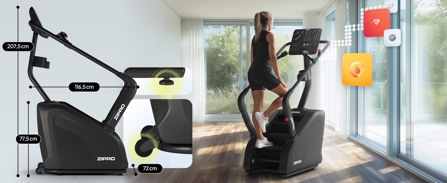 ZIPRO Legday – це тренажер для підйому по сходах, який забезпечує інтенсивне кардіотренування, ефективно зміцнює м’язи ніг і сідниць, а також допомагає швидко спалювати калорії, імітуючи природні рухи підйому по сходах.