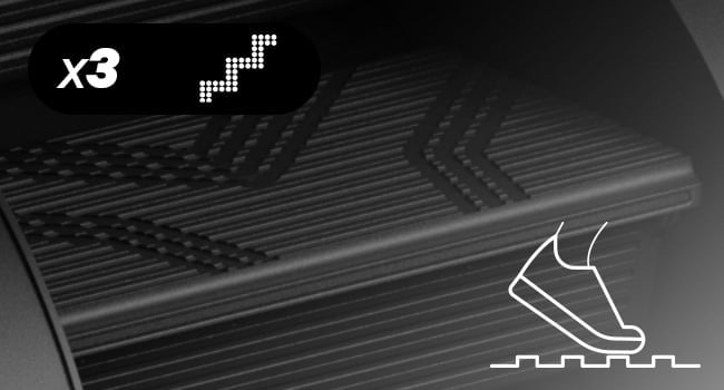 LEGDAY використовує шість рухомих проступей, три з яких залишаються активними, що дозволяє вам робити впевнені та стабільні кроки. Рифлена поверхня збільшує зчеплення, гарантує безпечний крок та зменшує ризик ковзання.