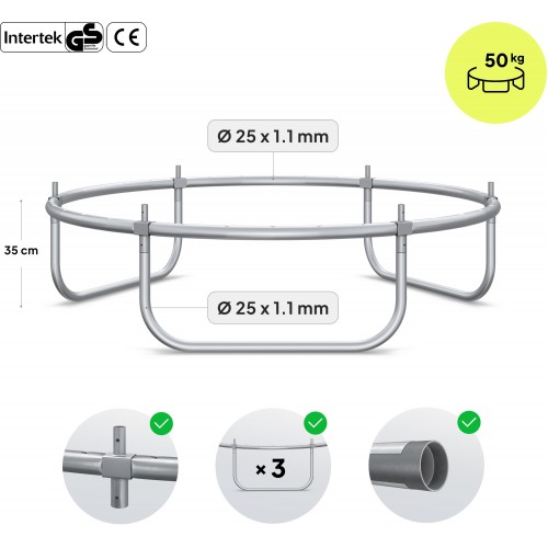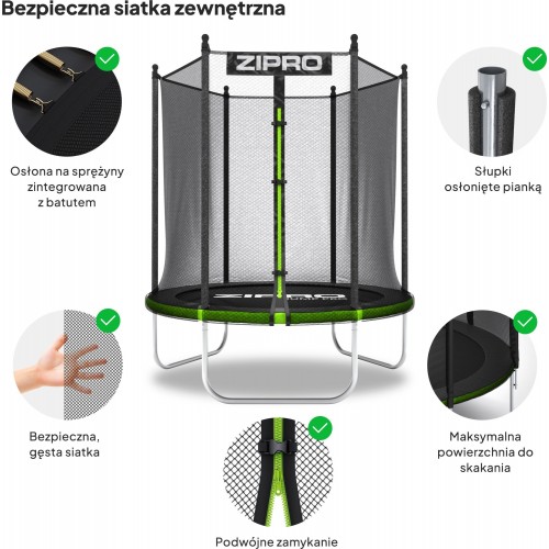 Захисна сітка розташована по зовнішньому краю конструкції, що повністю ізолює зону стрибків від пружин та металевих елементів.