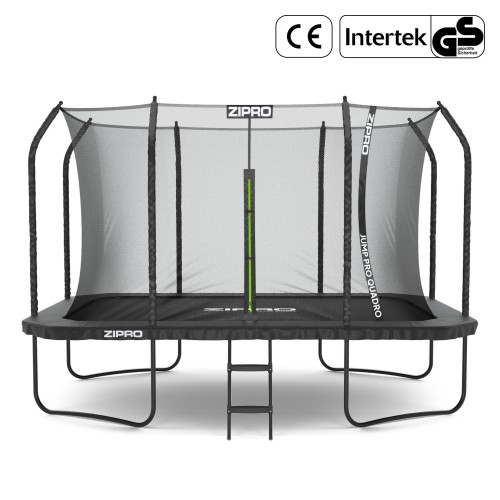 Батут прямокутний Zipro Jump Pro Quadro з внутрішньою сіткою 12FT (366 × 244 см) — компактна професійна динаміка