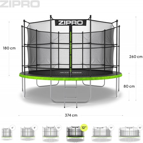 Батут Zipro Jump Pro з внутрішньою сіткою 12FT 374 см, Zipro Fitness, Відпочинок, Батути, З внутрішньою сіткою, 1633756