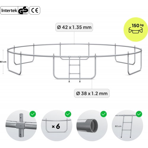 Діаметр майже 5 метрів дозволяє комфортно тренуватися, грати та проводити час на свіжому повітрі одночасно кільком користувачам.