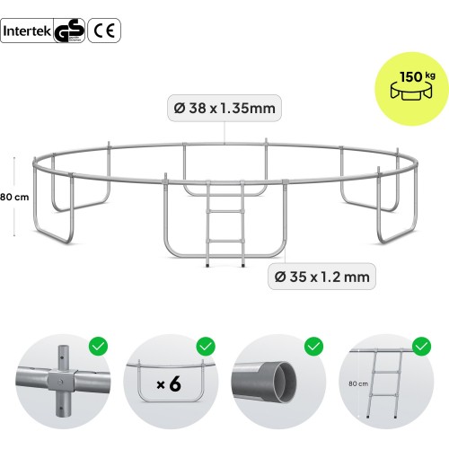 Батут Zipro Jump Pro 435 см — це просторий садовий батут для всієї родини, який поєднує високу міцність конструкції, відмінну динаміку стрибків та максимальний рівень безпеки. Великий діаметр дозволяє комфортно тренуватися дітям і дорослим.