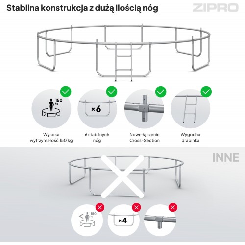 Якщо ви шукаєте батут для двору 14FT, великий батут із сіткою або садовий батут для активного відпочинку — модель Zipro Jump Pro стане ідеальним вибором.