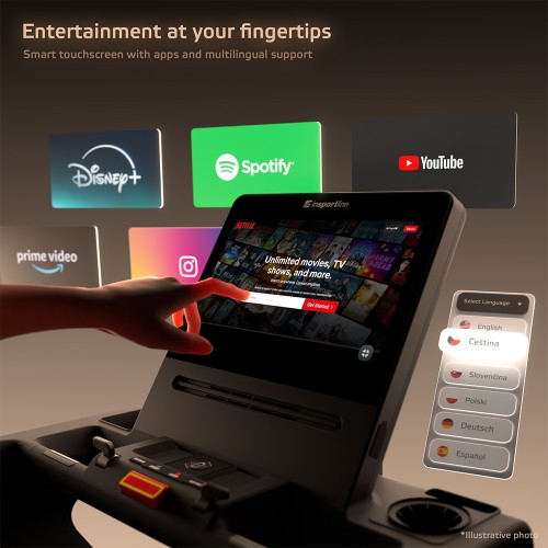Сучасна консоль пропонує набагато більше, ніж просто основні дані про тренування . Ви можете дивитися YouTube або Netflix , або підключити Bluetooth-навушники та бігати під власну музику. Завдяки підтримці нагрудного ременя Bluetooth ( ремінь не входить до комплекту ) ви можете точно контролювати свій пульс і користуватися програмами HRC, які автоматично регулюють інтенсивність залежно від вашої продуктивності. Не можете знайти свій улюблений додаток? Просто відобразіть екран свого смартфона на великому сенсорному TFT-дисплеї .
