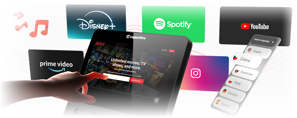 - Попередньо встановлені програми: YouTube, Netflix, Disney+, Amazon Prime Video, Facebook, Twitter, Instagram, Spotify (додаткові програми встановити неможливо)