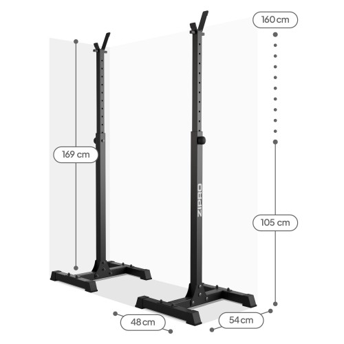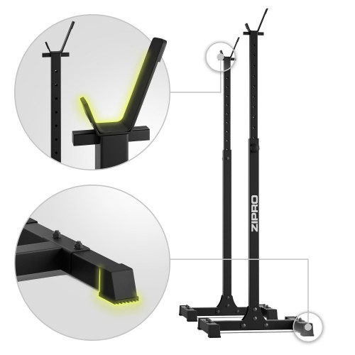 Кронштейни ZIPRO оснащені системою регулювання висоти, яка забезпечує високий рівень комфорту. Їхня вантажопідйомність дозволяє розмістити вагу до 350 кг, залишаючись при цьому повністю стабільними. Це досягається завдяки спеціальним гумовим накладкам – не тільки кронштейни залишаються на місці, але й, що не менш важливо, обтяжена штанга залишається стабільною. Для домашніх тренувань ви можете встановити їх на меншу відстань та налаштувати відповідно до вправ, які ви виконуєте на даний момент.