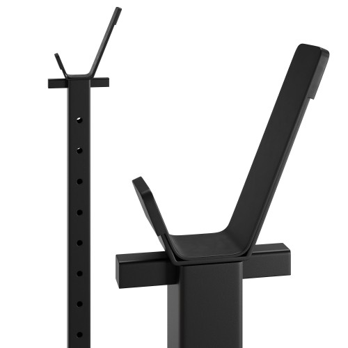 Важливим елементом будь-якого домашнього спортзалу є стійка для штанги, яка дозволяє виконувати вправи, такі як класичний жим лежачи або дещо інший підхід до румунської станової тяги. Це дає змогу впроваджувати численні варіації тренувань, розвиваючи багато різних типів м’язів.